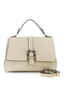 Borsa a mano in similpelle con pattina e fibbia gioiello costole a contrasto tramezze interne tasca sul retro e tracollina removibile per versatilità chic.