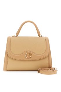Borsa a mano elegante in similpelle effetto pelle granosa con pattina e cornice imbottita. logo cafènoir in metallo e tracollina removibile con moschettoni dorati.