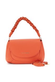 borsa a mano con pattina effetto pelle con grana e manico intrecciato corallo