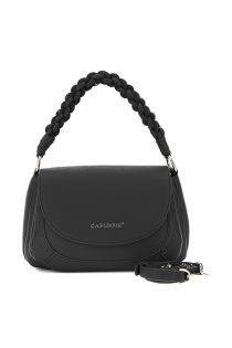 borsa a mano con pattina effetto pelle con grana e manico intrecciato nero