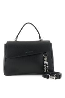 borsa a mano con pattina effetto pelle granosa e charm colorato logato nero