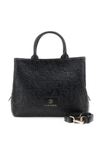 borsa a mano effetto pelle con embossed all over logato nero