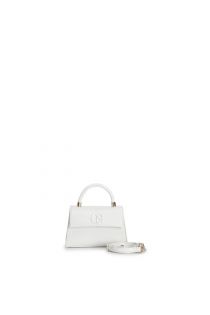 Minibag rigida effetto vernice con manico e pattina. logo cafènoir in tono alla borsa. chiusura a calamita. borsa dotata di tracolla.