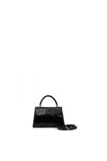 Minibag rigida effetto vernice con manico e pattina. logo cafènoir in tono alla borsa. chiusura a calamita. borsa dotata di tracolla.