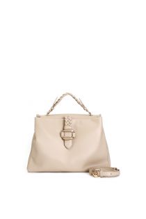 borsa a mano morbida con manico intrecciato, fibbia e tracolla removibile. beige