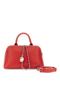 Borsa a mano dalla forma trapezioidale in similpelle con zip a vista catena decorativa e charm metallico. dotata di tracolla removibile regolabile.