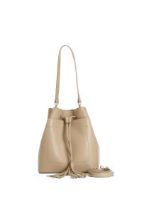 Borsa a secchiello in pelle martellata con tasca sul davanti chiuso con coulisse con nappine in pelle. borsa dotata di tracolla.