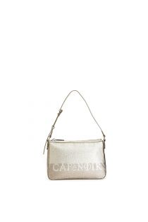 borsa a spalla con applicazione di strass bicolor oro