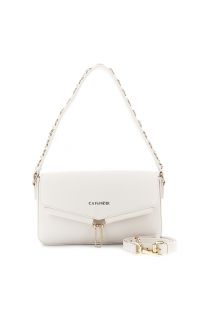 borsa a spalla con coulisse impreziosita da catenina in metallo avorio
