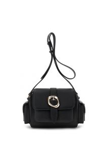 Borsa a spalla in similpelle effetto pelle martellata con pattina fibbia asimmetrica e multi tasche laterali. tracolla regolabile per una doppia portabilità.