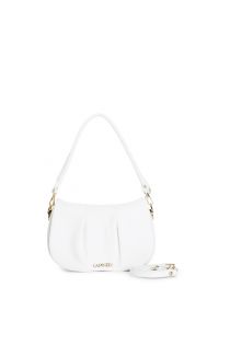 borsa a spalla con pattina con motivo di pieghe sul davanti bianco