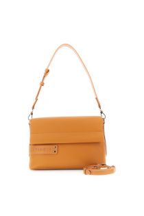 borsa a spalla con pattina effetto pelle con grana con passante e logo in tpu arancio