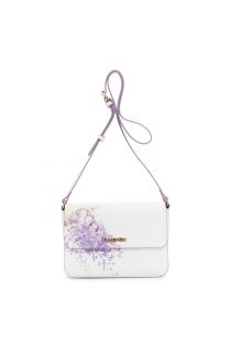 borsa a spalla con pattina in materiale effetto pelle con stampa macro fiore glicine