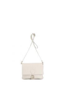 borsa a spalla con pattina in pelle dollaro con tracolla regolabile panna