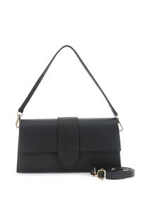 borsa a spalla con pattina in pelle martellata con tracolla removibile nero