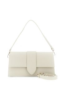 borsa a spalla con pattina in pelle martellata con tracolla removibile panna