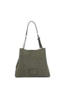 borsa a spalla in effetto suede con grande lettering sulla tracolla oliva