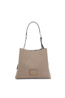 borsa a spalla in effetto suede con grande lettering sulla tracolla taupe