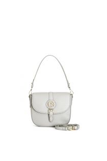 borsa a spalla in pelle martellata con pattina con logo metall salvia