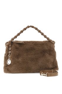 borsa a spalla morbida in pelliccia sintetica con tracolla visone