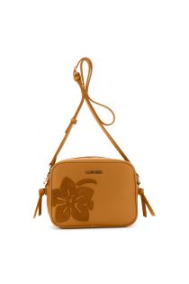 borsa a tracolla in materiale effetto pelle con applicazioni floreali nocciola