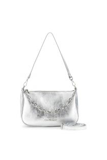 borsa a tracolla in pelle laminata con manico in catena dorata argento