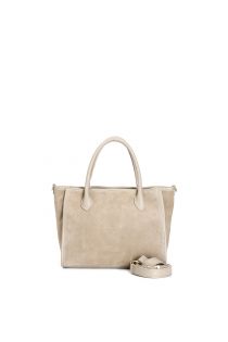 borsa con manici tubolari in crosta con rifiniture in pelle martellata tortora
