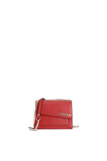 borsa con pattina asimmetrica con applicazione di lettering rosso