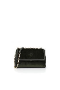 Borsa con pattina in velluto con logo embossed. doppio scomparto e taschino interno con zip. placchetta metallica con logo cafènoir sulla parte laterale. tracolla con catena scorrevole per portabilità a spalla.