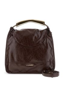 Borsa a spalla effetto naplak con manico metallico strutturato charm e lettering in metallo. dotata di tracolla regolabile e removibile.