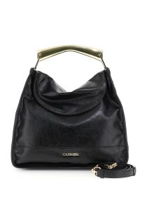 Borsa a spalla effetto naplak con manico metallico strutturato charm e lettering in metallo. dotata di tracolla regolabile e removibile.