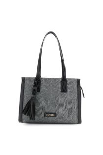 borsa in tessuto tweed con nappina e dettaglio logo nero