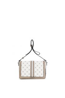borsa rigida con pattina e stampa logata all-over in contrasto bianco/cipria