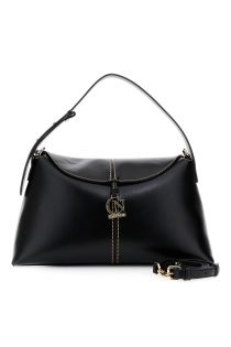 Borsa sottospalla in similpelle con pattina rifinita da cuciture a contrasto e pendente in metallo con logo dorato. dotata di tracolla removibile per un uso pratico e versatile.