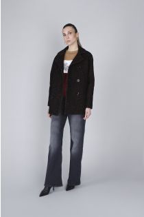 Caban corto doppiopetto in tessuto floccato dalla texture unica. un capospalla casual e ricercato perfetto per affrontare l’inverno con stile e vestibilità comfort. la modella è alta 173 cm e indossa la taglia s.