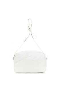 Camera bag in similpelle con imbottitura trapuntata effetto onde rivetti decorativi e tracolla regolabile per un uso pratico e versatile.