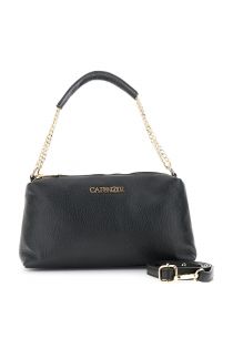 Camera bag in pelle martellata con manico a catena e spallaccio coordinato. dotata di tracolla removibile con moschettoni e logo in metallo frontale. ideale per ogni look.