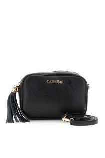 Camera bag in pelle martellata con nappina laterale e tracolla removibile con moschettoni. compatta ma capiente è perfetta per look casual e raffinati