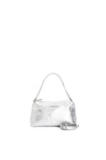 camera bag in pelle metallizzata con manico in catena con manigliotto e nappina argento