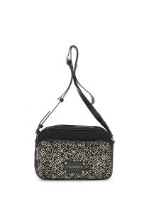Camera bag trapuntata in nylon con stampa floccato effetto tessuto. chiusura con zip e tracolla regolabile. design compatto e originale perfetto per ogni giorno.