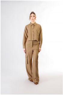 Camicia corta con tasche a toppa in tessuto dalla costruzione in grisaglia. capo a maniche lunghe dalla forma a scatolina. must-have del guardaroba da indossare il giorno con un paio di pantaloni in coordinato o jeans.