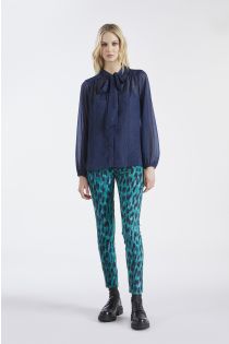 Camicia con fusciacca al collo realizzata in un brioso tessuto georgette con dei delicati tocchi di lurex