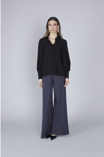 Camicia elegante in tessuto fluido con maniche arricciate e polsino alto. capo perfetto per look sofisticati. vestibilità regolare. la modella è alta 173 cm e indossa la s.