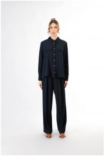 Camicia con taschini frontali realizzato in tessuto fluido chiusura con bottoni gioiello. camicia "di tutti i giorni" per eccellenza si abbina perfettamente a pantaloni e gonne cappotti e giacche rendendo il cambio look più facile che mai.