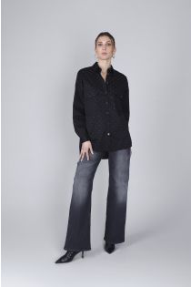 camicia in popeline con microborchie nero
