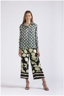 camicia in satin di viscosa stampata geometrico
