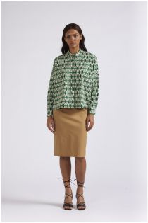 camicia in tessuto leggero stampato rombo multiverde