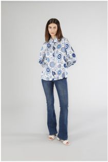 Camicia a maniche lunghe realizzata in satin di viscosa stampato. chiusura con bottoni. must-have del guardaroba da indossare il giorno con un paio di pantaloni o jeans.