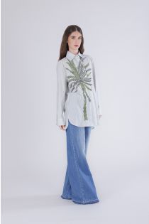 camicia rigata con palma ricamata rigato multiverde