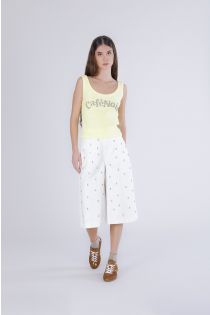 Canotta in costina di cotone fresca e confortevole con scollo ampio e vestibilità femminile. logo ricamato sul davanti con borchiette e strass per un tocco luminoso e trendy. la modella è alta 175 cm e indossa la taglia s. vestibilità: regular.